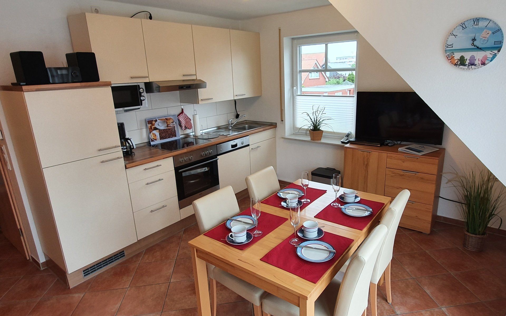 Familienfreundliche OG-Wohnung für max. 4 Personen, ca. 64m², mit zwei Schlafzimmern und Balkon.